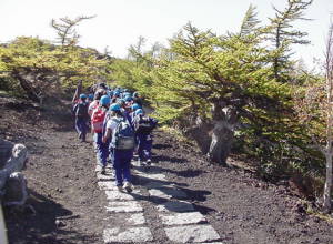 ぼく達は、富士山の植物ことを調べました。いろいろな、植物が見つかりました。それだけではなく、富士山に生えている植物は、一合目、二合目、三合目、四合目、五合目、六合目、七合目、八合目、九合目、十合目のそれぞれの場所によって、種類がちがう事に気がつきました。しかも富士山の上に行くほど木の大きさが小さくなっていきました。