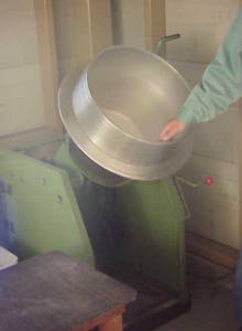 回転するかまに、星をいれる。少しずつ加 えながら、太らせていきます。