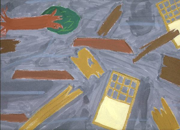 甲府から市川大門町に続く桃林橋は流されてしまいました。高田村のひがいははげしく、家は水につかって屋根が少し見えるだけです。大きい川もどんどん水がふえてかく地の堤防がこわれました。