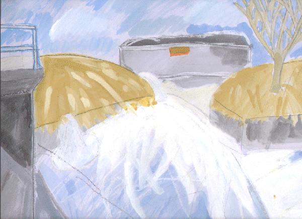 4,そこで、甲府の役人は、白根町有野の矢崎又右衛門にせぎの工事を命じました。又右衛門は、3年かけて曲輪田までのせぎをさらにりっぱにしました。しかし、これ以上ほり進めることはできませんでした。